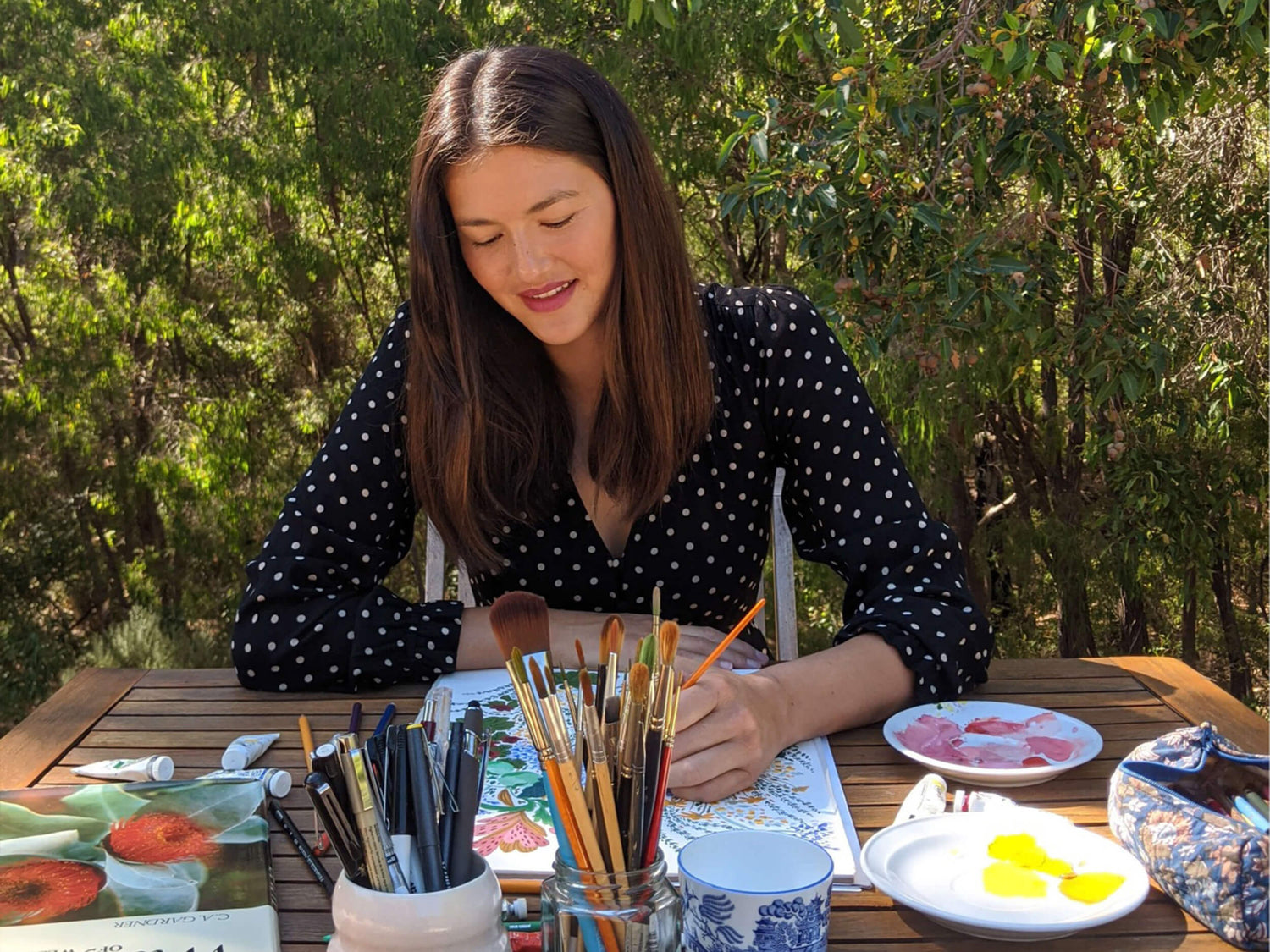 Angela Mckay is an illustrator, surface pattern designer and painter who’s easily recognizable work is inspired by far flung travel adventures, the natural world, animals and the female form. Her work is created by hand, starting with pencil sketches that grow into saturated and highly detailed gouache, pencil and watercolor paintings. She loves to record her travels and musings by painting in small sketchbooks which are then often used as studies for works later on.